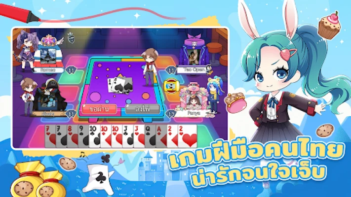 ดื่มด่ำไปกับโลกแฟนตาซีอันมีชีวิตชีวา ด้วยกราฟิกที่สวยงาม ตัวละครสุดแสนน่ารัก และเสียงดนตรีประกอบที่สนุกสนานเร้าใจ พร้อมเอฟเฟกต์การเล่นไพ่ที่สมจริงและเสียงพากย์ตัวละครที่สร้างรอยยิ้มได้ไม่รู้จบ แสดงอารมณ์ของคุณผ่านสติกเกอร์สุดกวนอันเป็นเอกลักษณ์ เช่น "คิดจะสู้หรอ!" หรือ "ลงแล้วบอกด้วย" และปลดล็อกความสนุกไม่รู้จบกับการปรับแต่งรูปโปรไฟล์ของคุณด้วยกรอบ ป้ายชื่อ และหมวกแฟนซีจากตัวละครหลากหลายในแดนมหัศจรรย์ นอกจากนี้ คุณยังสามารถร่วมสนุกได้อย่างรวดเร็วด้วยระบบค้นหาห้องเพียงปุ่มเดียว หรือสร้างห้องส่วนตัวเพื่อชวนเพื่อนซี้มาประลองฝีมือกันได้ทุกเวลา
